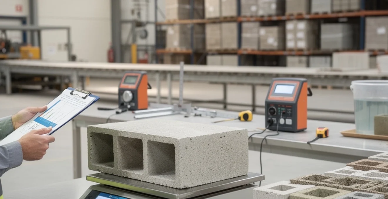 En complément, des pesées ponctuelles peuvent être réalisées sur des blocs prélevés directement en sortie de chaîne ou sur palette, afin de vérifier l’impact de l’humidité résiduelle et des conditions de stockage. Ces pesées « en situation réelle » intéressent particulièrement les acheteurs et les bureaux d’études, car elles reflètent mieux le poids des blocs au moment où vous les manipulez et les mettez en œuvre sur chantier.